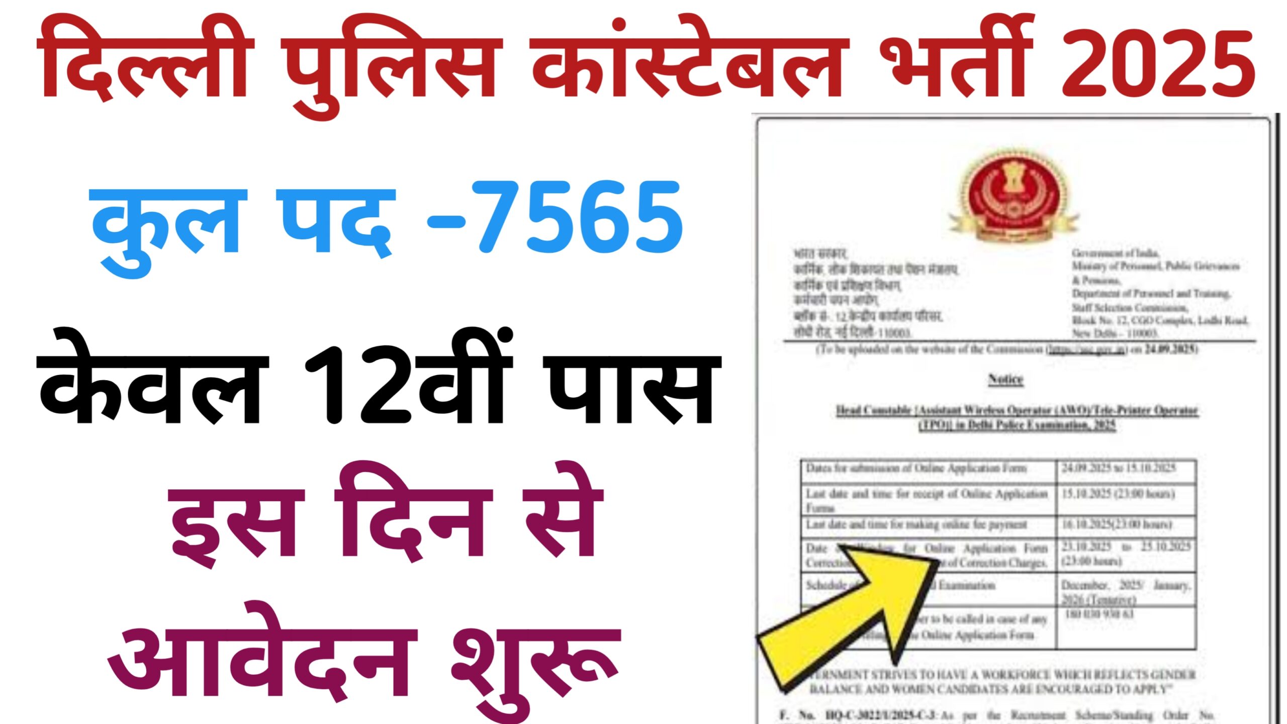 दिल्ली पुलिस कांस्टेबल भर्ती 2025||7565 पदों का सुनहरा मौका! पूरी जानकारी यहाँ पाएं।